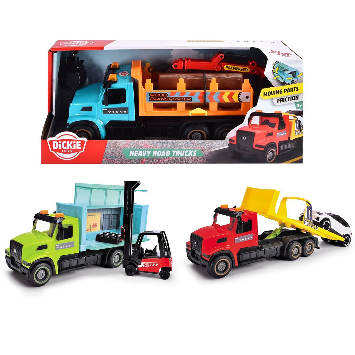 • 3 oyuncak arabadan 1'i - Dickie Toys Ağır Yol Kamyonları serisi şunlardan oluşur: