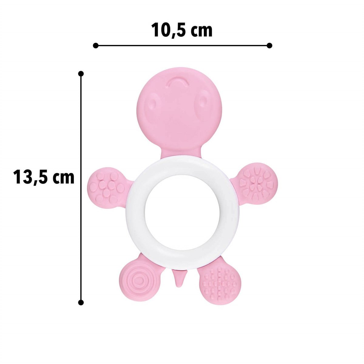 • Kaplumbağanın üzerinde bulunan şekil ve kabarcıklar bebeğinizin damağına masaj yapar, onu rahatlatır.