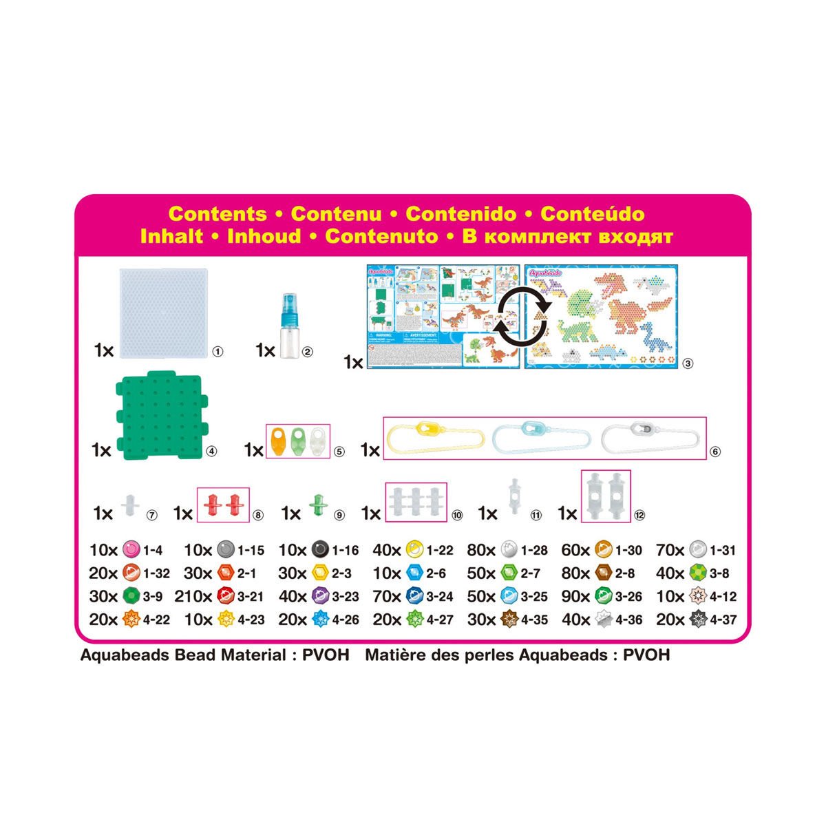 28 farklı renkte 1200'den fazla boncuk, tasarım şablonları, boncuk panosu, 3 adet anahtarlık aksesuarı, su spreyi, çevir-yap tablası ile gelir.