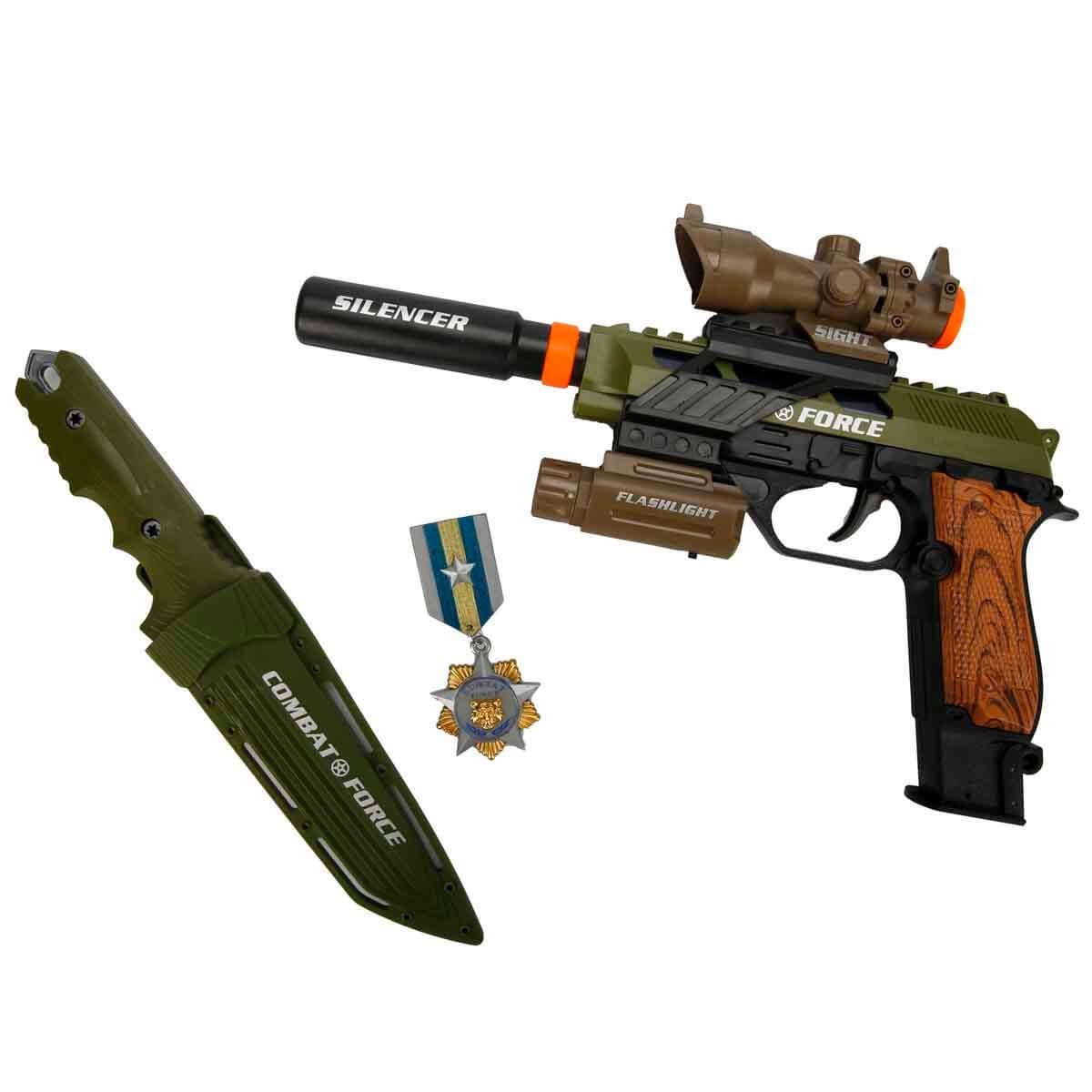 Tetiği her çekişinde çıkardığı ışık ve ses özellikleri ile seni eğlendirecek olan silah ile oyunların artık hem daha eğlenceli hem de daha gerçekçi. Ayrıca silahın flaşını yakarak askeri operasyon oyunlarına sabah akşam durmadan devam edebilirsin. Senin orduya değil ama ordunun sana ihtiyacı var. Düşmanların karşısına çık ve Sesli ve Işıklı Silah Seti ile ordunu zafere taşı!