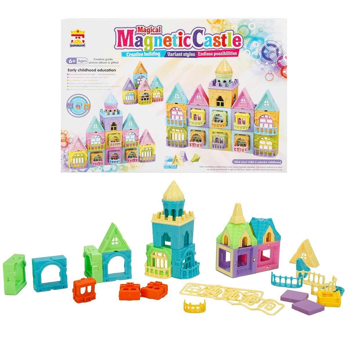 Prensesler, Sihirli Manyetik Kale’de yaşar! Kendi kaleni inşa etmeye ne dersin? Krallığın gelmiş geçmiş en güzel prensesi olarak pek çok oyun oynadın, halkına yardım ettin ve görkemli kalende mutluluk içinde yaşadın. Şimdi dillere destan güzelliğin ile kendi kaleni inşa edip orada yaşamak için hazırsın! Renkli parçalar senin hayal dünyana ve biraz da kullanım kılavuzuna göre şekil alıyor. Pek çok katı olan ihtişamlı bir kale ya da daha küçük ve mütevazi bir kale inşa edebilirsin. Senin hayal gücün, senin krallığın! Renkli parçalar manyetik olduğu için onları kolayca bir araya getirebilirsin. Kalenin odalarına balkon ekleyebilir ve krallığını güzel bir manzaradan seyredebilirsin. Kaleni önce hayal et ve sonra parçaları bir araya getir. Çocukların hayal güçlerinin ve yaratıcılıklarının gelişmesine katkıda bulunur. Eğlenceli oyunlar oynayarak keyifli vakit geçirmelerine yardımcı olur. Arkadaşları ile oynayacakları oyunlar sosyalleşmelerine katkı sağlar.