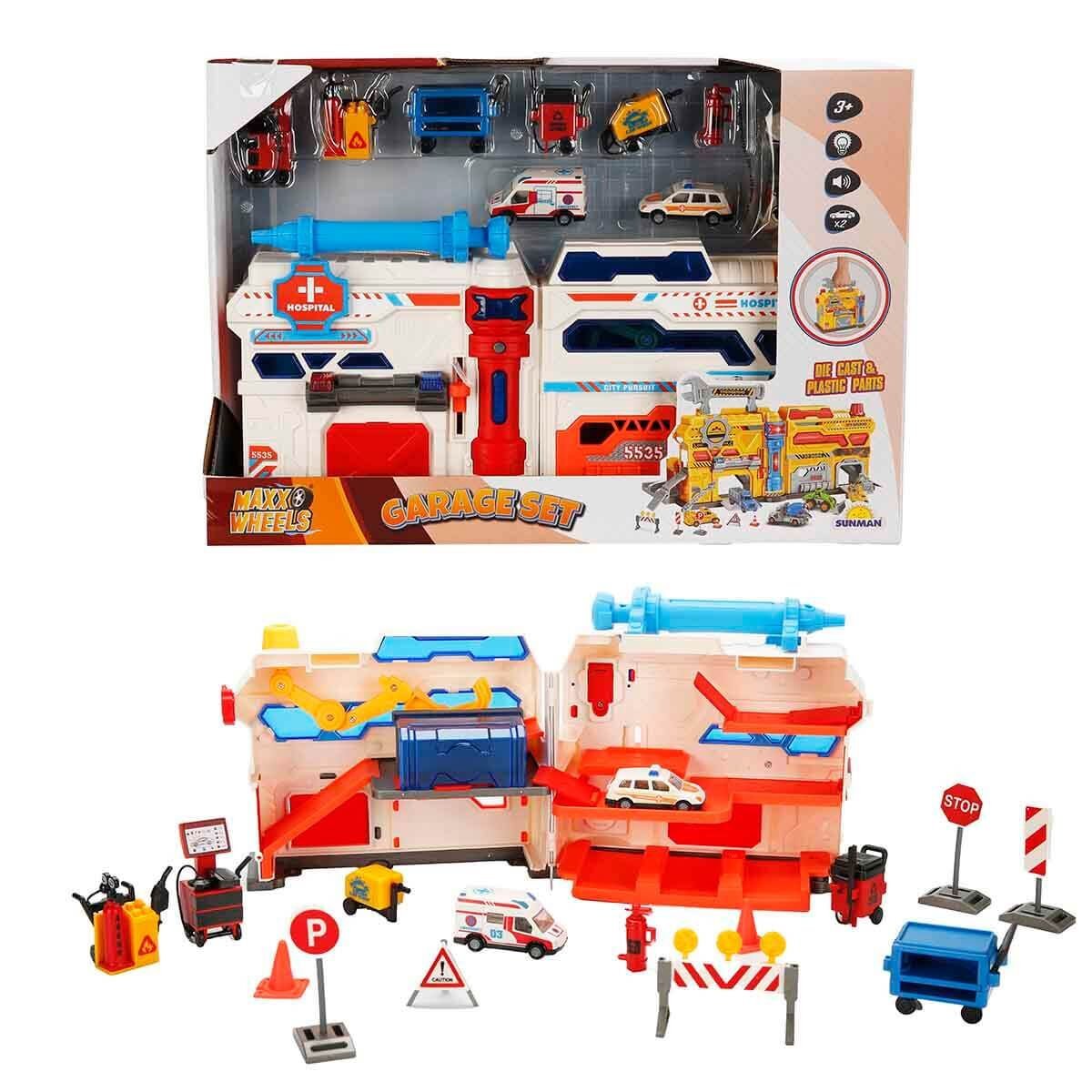 Garajda bir hareketlilik var! Mini araçlar yerini aldıysa, trafik levhaları yerleştirildiyse ve garajın içi kurulmaya başlandıysa yoğun geçecek bir güne hazırsınız demektir. Maxx Wheels Sesli ve Işıklı Garaj Seti’nde her şey düşünüldü! Aracın bakımı mı geldi? Cihaz hazır! Benzin mi bitti? İstasyon şurada! Üstelik garajın içinde arabanın temizliğini bile yapabileceksin. Bu garaj minik bir şehir gibi! Garajın üzerindeki gri tuşa bastığında asıl eğlence başlayacaktır. Bir anda ışıklar yanıp sönüyor ve araç sesleri duyuluyor. Bu çok gerçekçi! Ve en güzel kısmı… Oyun bitti diye eğlence bitmiyor. Çünkü bu garajı taşımak bile çok keyifli! Üzerindeki taşıma kolunu tutup onu istediğin yere götürebilirsin. Salonda oyun mu bitti, o zaman odaya gidelim! Arkadaşına giderken bile garajını yanında taşıyabilirsin. Araçlar çoktan hazır…