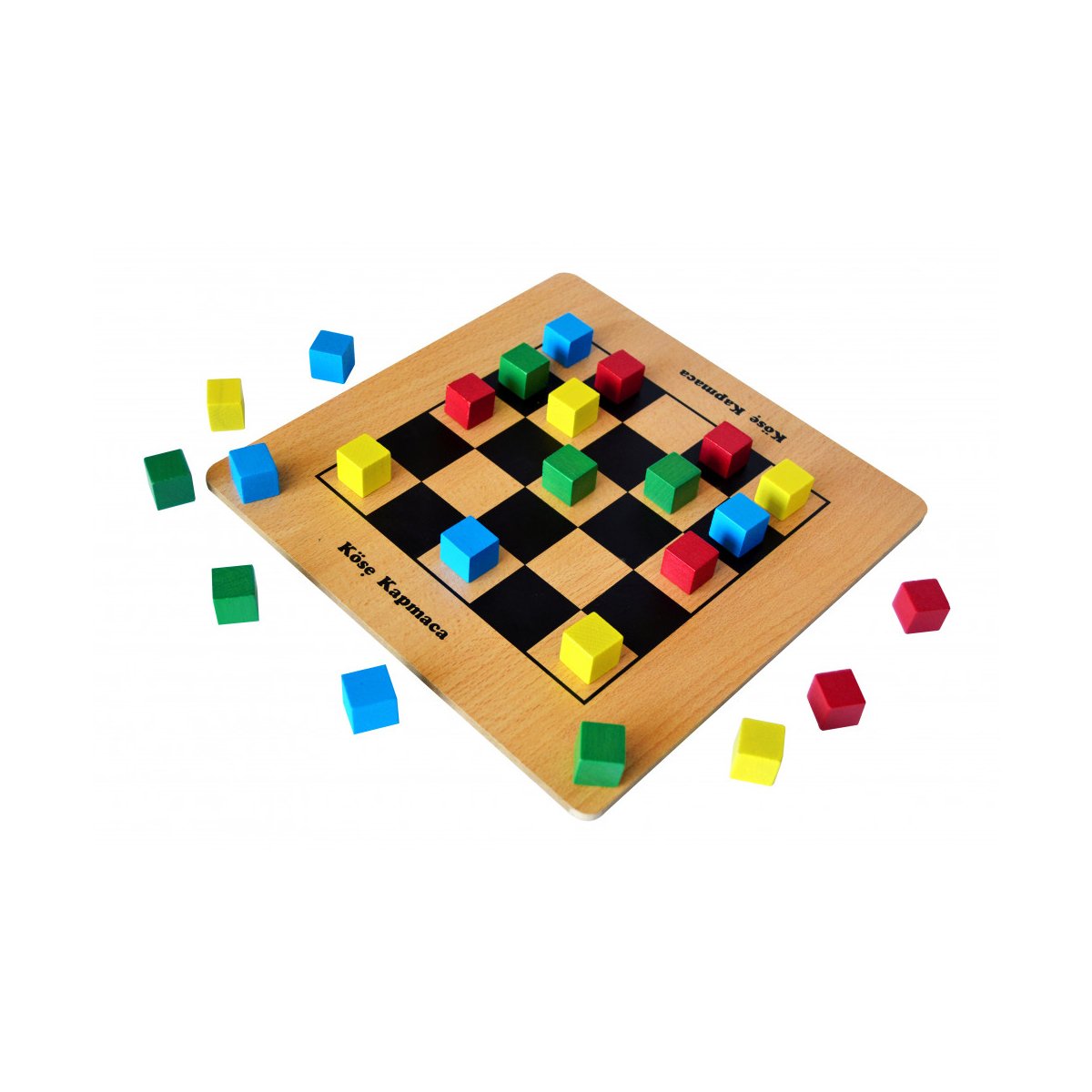REDKA Köşe Kapmaca kutusunda24 adet ahşap renkli küp ve bambu kaplama mdf oyun zemini bulunur.