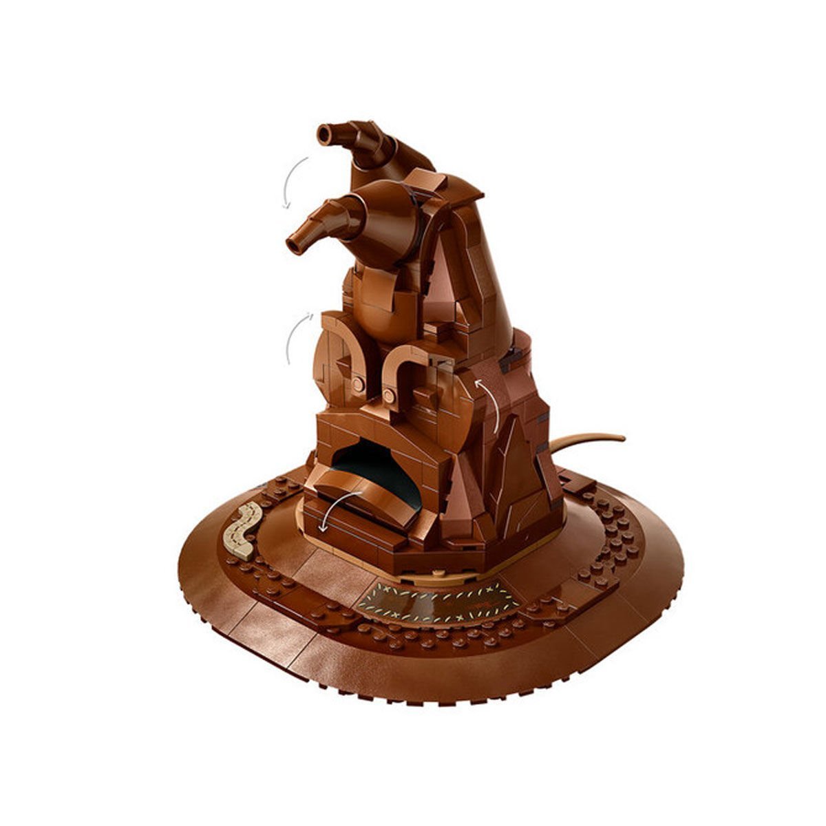 Şapkayı Gryffindor™, Slytherin™, Hufflepuff™ ve Ravenclaw™ arma baskılarının olduğu standa yerleştirin. Bu benzersiz LEGO setinde bulunan Seçmen Şapka takmış Harry Potter karakteri minifigürü, bu özel sergileme modelini tamamlar.