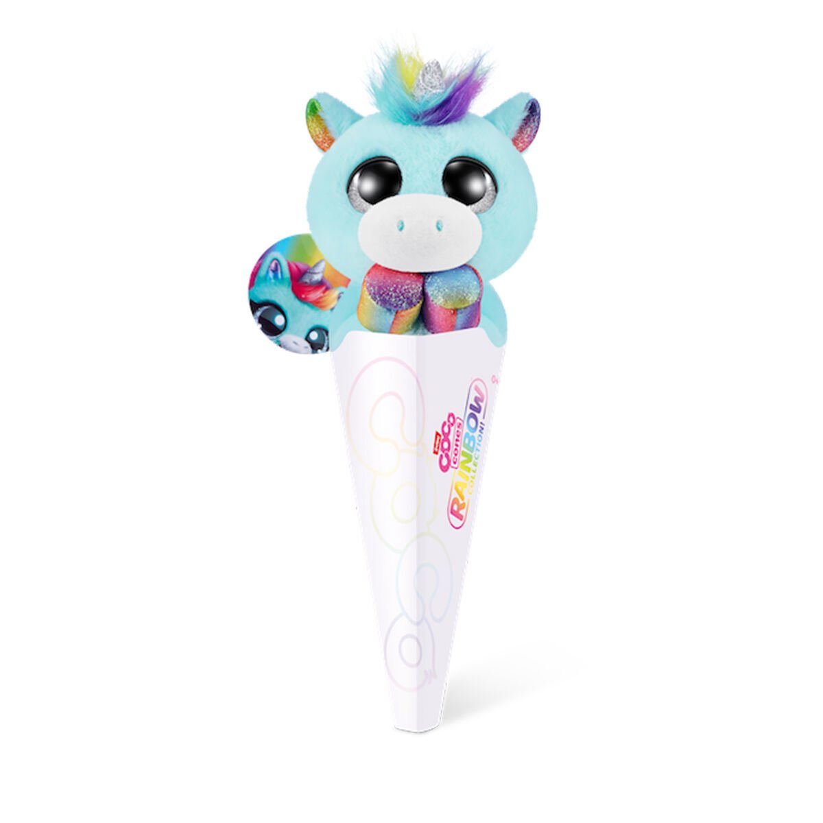 Coco Cones sevimliliği şimdi göz alıcı gökkuşağı renkleriyle geliyor! Birbirinden canlı renklere sahip Coco Cones Gökkuşağı Pelüşleri parlak gözlere sahip. Dotti, Floro, Flashy, Vivi, Huey, Splash olmak üzere 6 asortiden oluşuyorlar.