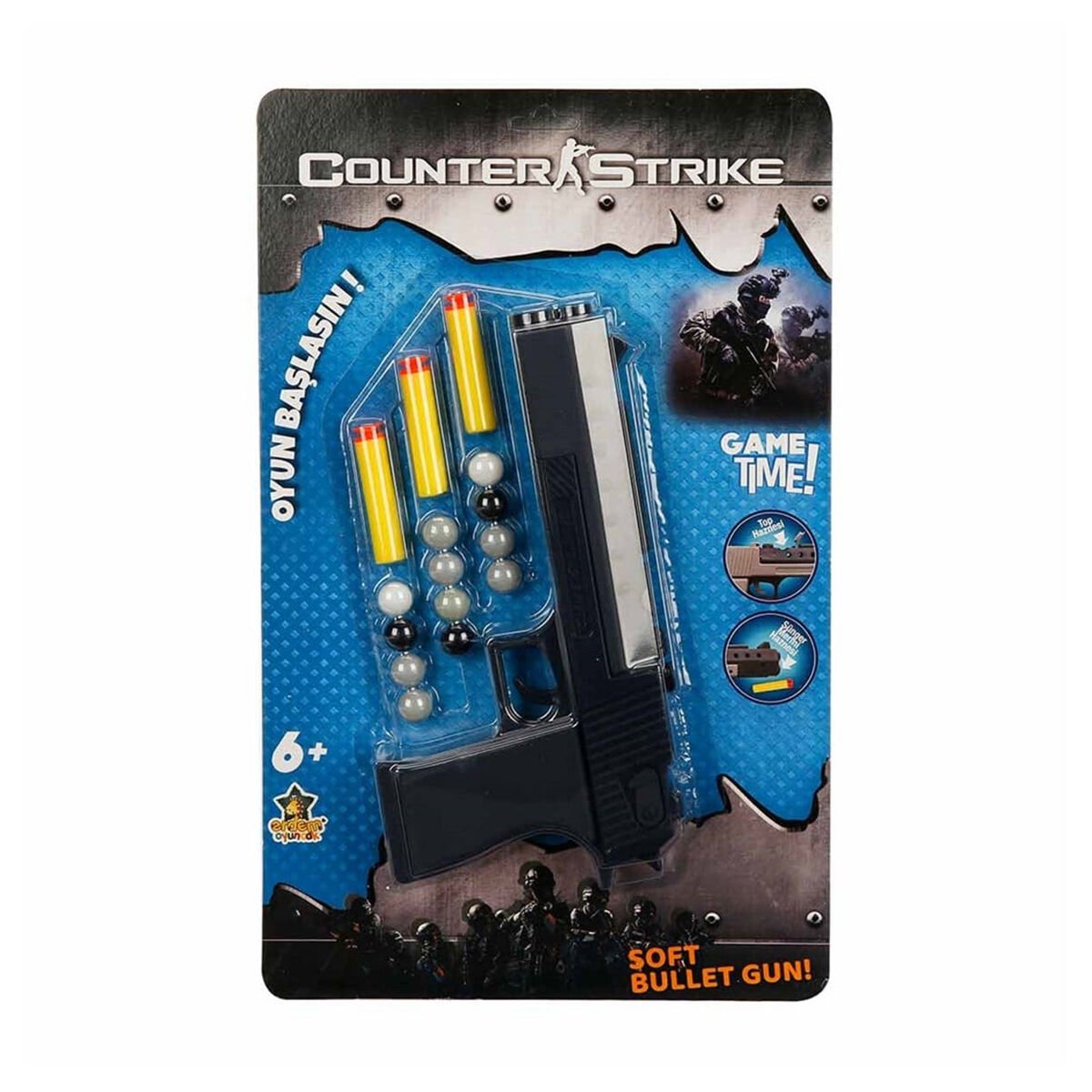 Dart ve Top Atan Counter Strike Silah ile macera dolu kapışmalar seni bekliyor! Dart ve top atan bu silah, tek başına geçireceğin vakitlere eğlence katarken aynı zamanda arkadaşlarınla bir araya gelip heyecanın tadını çıkarmak için en büyük yardımcın olacak! Manuel mekanizması sayesinde kontrol senin elinde!