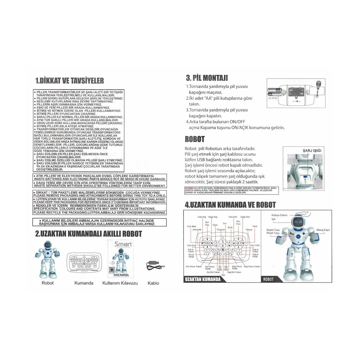 GAW--1088 Kumandalı İnteraktif Şarjlı Eğitici Eğlendirici Akıllı Büyük Robot