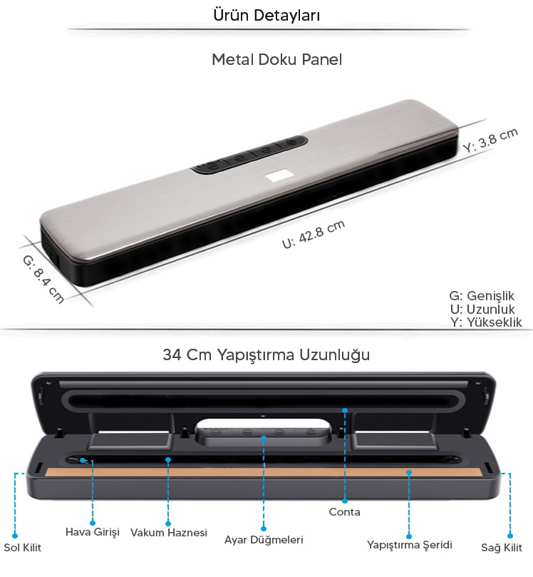 Manuel vakumlama ile istenilen sonucu paketleme sıkılığı 0 - 100% elde edebilirsiniz.