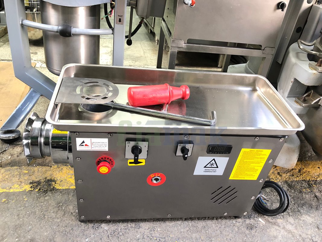 Güçlü dökme demir redüktörlü et kıyma makinesi. İleri-geri çalıştırma özelliği ile no 32 kıyma makinesi.