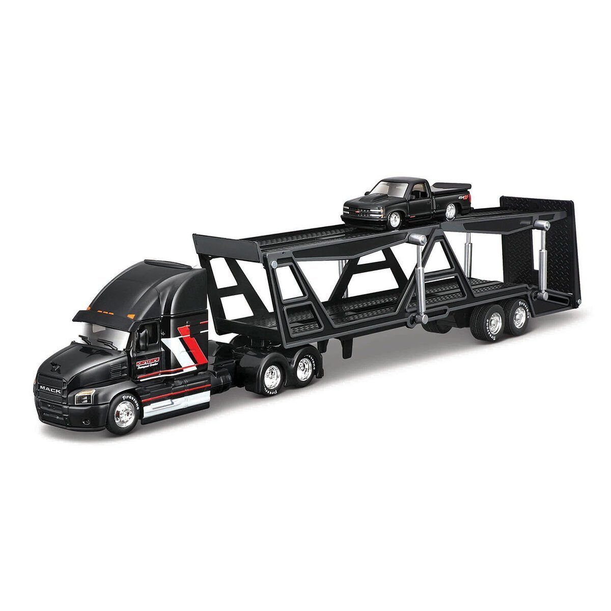 plastik parçalı döküm metal gövde - hareketli parçalara sahip özel 1/64 araba taşıyıcı tır ve 1/64 döküm araç içerir.